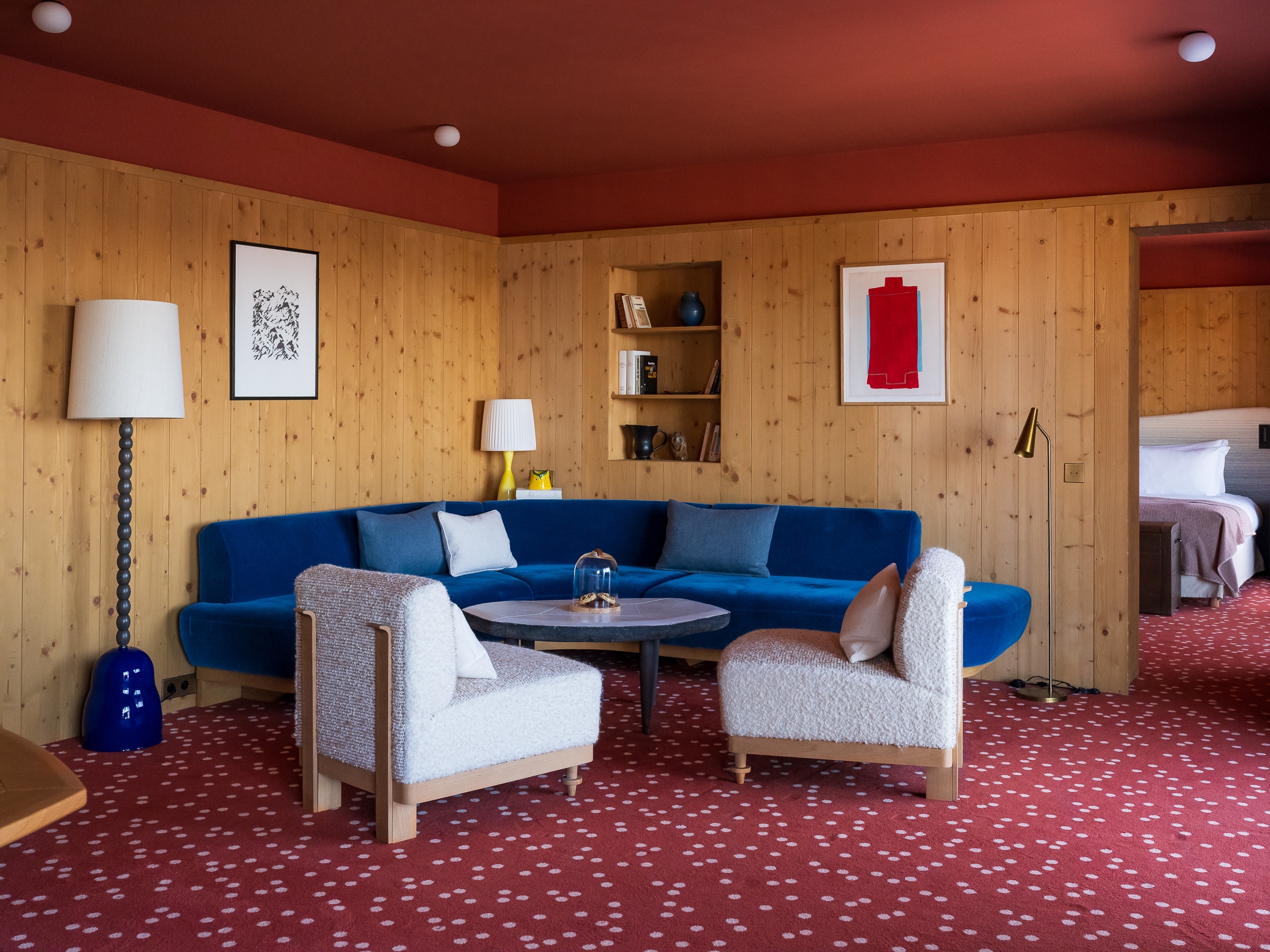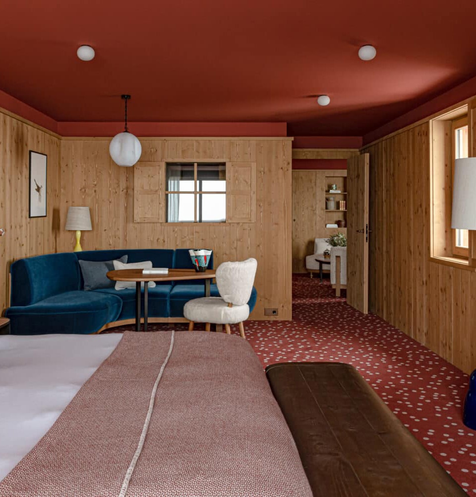 Wood panelling, comfortable furnishings and charming fabrics, as is traditional in the mountains...